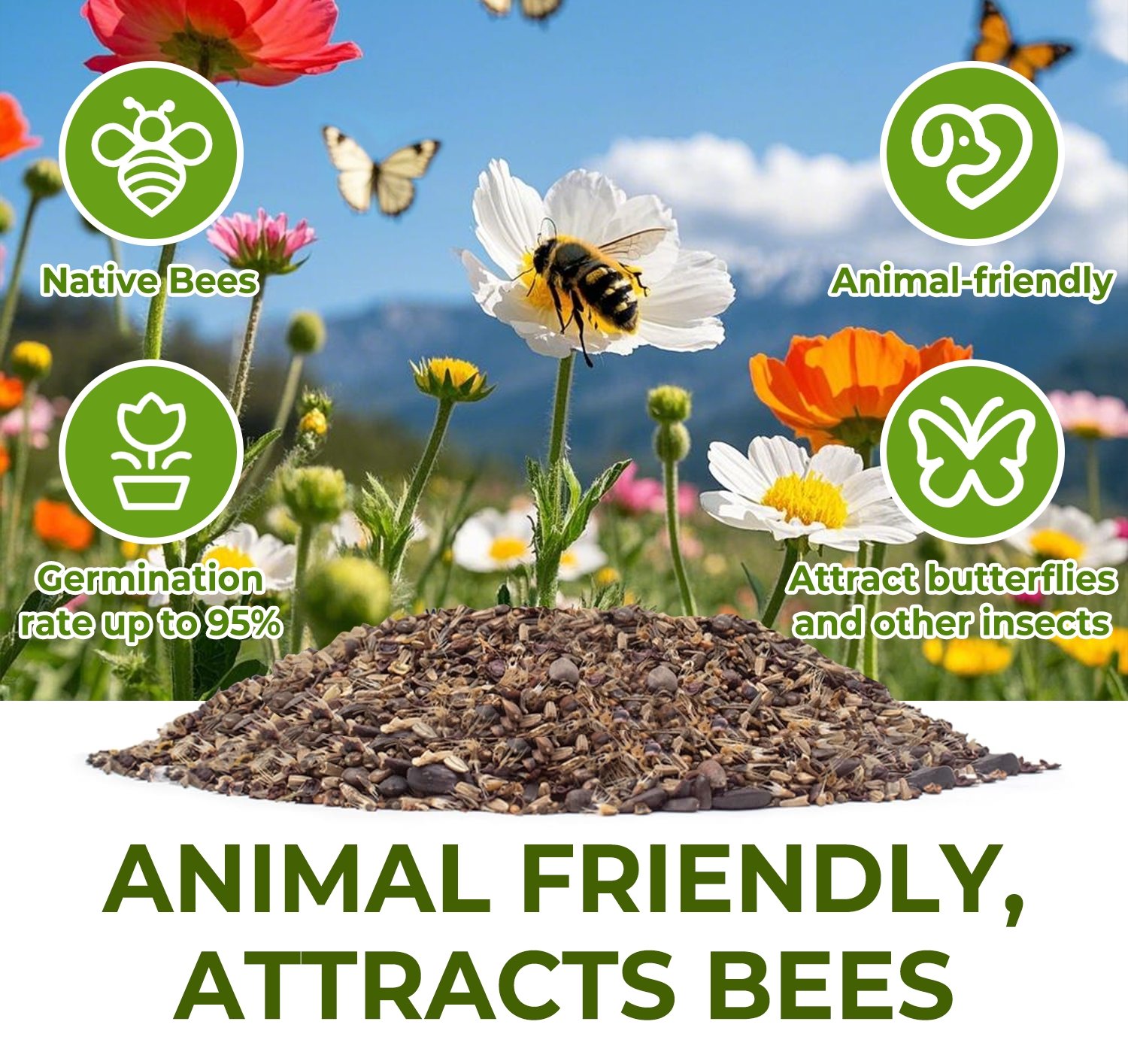 🐝Váľanie sa s chlpatým dieťaťom x Včielka zbierajúca med: Vybrané 100 % netoxické odrody kvetov, domáce zvieratá sa hrajú bez obáv, viac včelích prírodných jedální, takže sa záhrada premenila na ekologický raj.